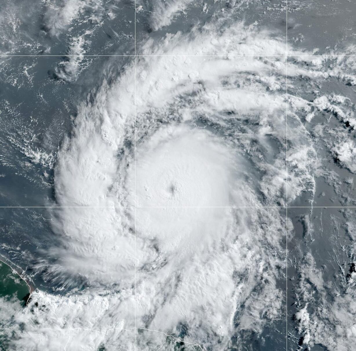 De acuerdo con el boletín de las 5:00 p.m., el sistema —de categoría cuatro— se encuentra en la latitud 11.1 norte, longitud 55.5 oeste. Su presión central mínima es de 960 mb.