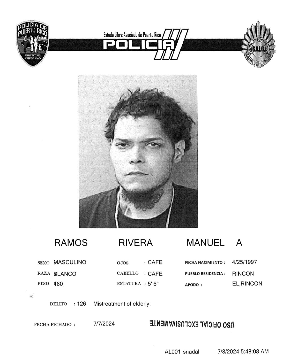 De acuerdo a la información preliminar, el sujeto, identificado como Manuel A. Ramos Rivera, llegó a la vivienda en horas de la madrugada, a exigirle dinero a la sexagenaria, quien le manifestó que lo único que tenía eran 40 dólares. El hombre le exigió que retirara dinero de un cajero automático.