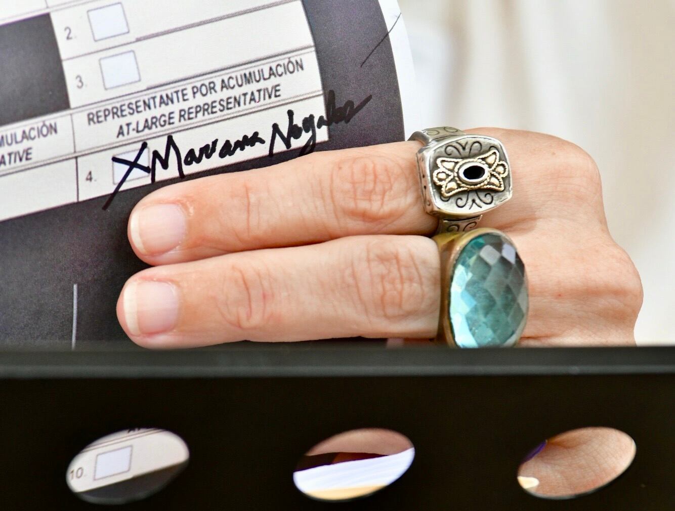 La representante explicó que el espacio en el que se debe escribir el nombre del candidato por nominación directa es “extremadamente pequeño”, por lo que resulta “casi imposible” que quepa un nombre completo, el cual debe ser escrito utilizando un marcador.