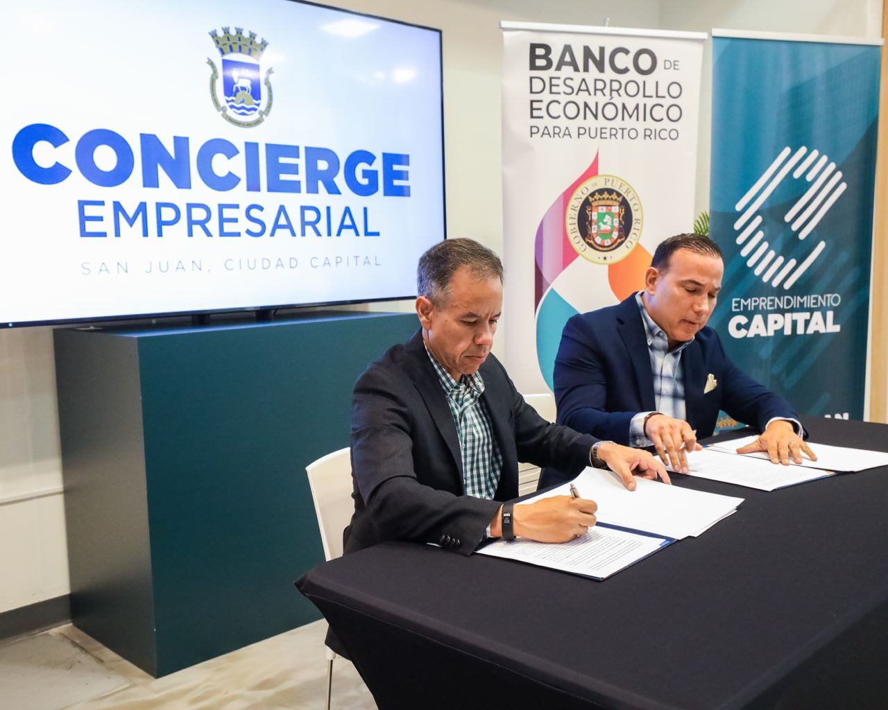 El Banco de Desarrollo Económico para Puerto Rico (BDE) y el Municipio de San Juan (MSJ)concretaron un Acuerdo de Colaboración mediante el cual ambas partes estarán dando apoyo a los empresarios que busquen beneficiarse de los servicios de orientación y capacitación que ofrece el Concierge Empresarial, en el primer piso de Plaza Las Américas.