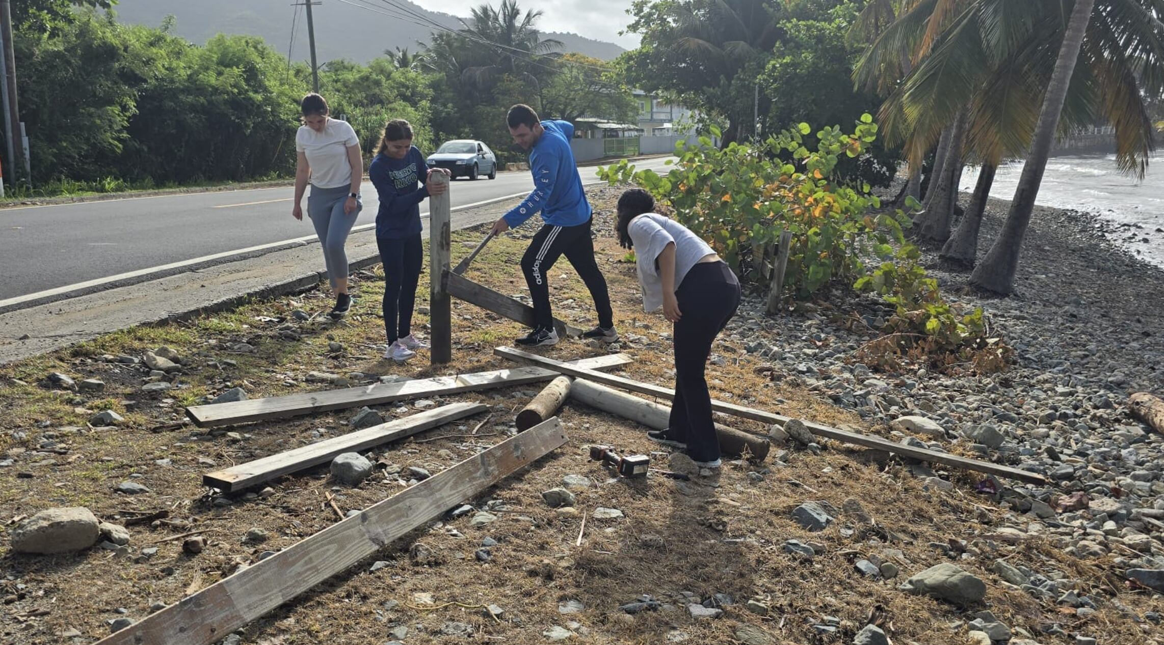 Un grupo de estudiantes que forman parte del internado de la organización comunitaria Amigos de las Tortugas Marinas (ATMAR), se unió para llevar a cabo la reconstrucción de una valla que fue destruída por las fuertes marejadas producto del paso del huracán Beryl en el municipio de Patillas.