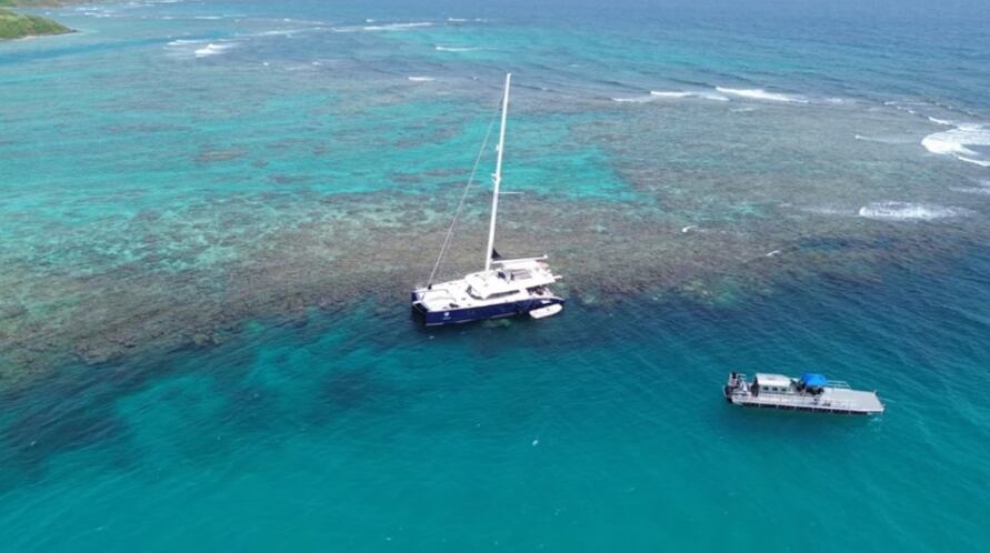 El velero Obsession, un catamarán de 72 pies, encalló en un arrecife el 21 de julio de 2024.