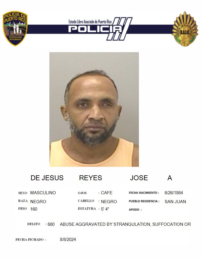 Agentes del Negociado de la Policía de Puerto Rico, adscritos al Precinto de Río Piedras, realizaron una investigación que culminó en la presentación de cargos por parte de la Fiscalía por Maltrato (artículo 3.1); Maltrato Agravado (artículo 3.2), Maltrato mediante amenaza (artículo 3.3.) – de la Ley 54 de Violencia Doméstica y Portación y Uso de Armas Blancas (artículo 6.06), de la Ley de Armas, contra un hombre, identificado como José A. De Jesús Reyes, de 40 años y vecino de San Juan.