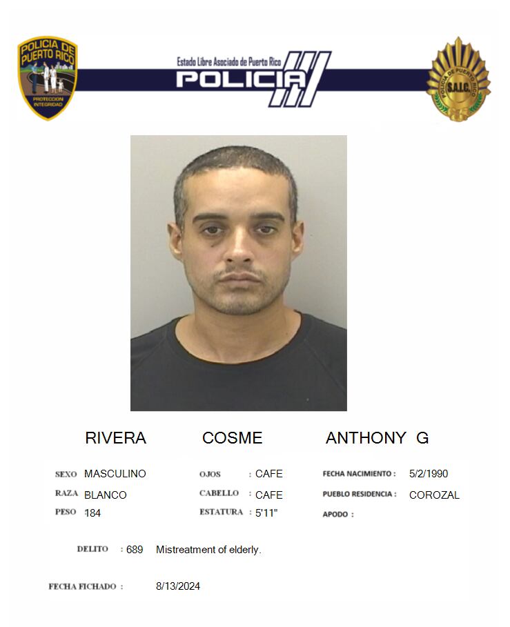 Rivera Cosme fue puesto bajo arresto en horas de la mañana de hoy por agentes de Arrestos Especiales de Bayamón, siendo llevado ante la juez Imarie Cintrón quien diligencio la orden, siendo ingresado en la Cárcel Correccional de Bayamón, tras no prestar la fianza impuesta.