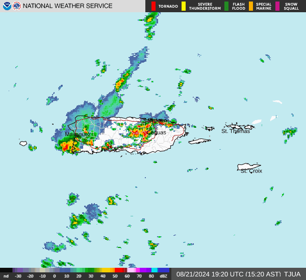 El Servicio Nacional de Meteorología (SNM) en San Juan extendió la advertencia de inundaciones para los municipios de Bayamón, Carolina, Guaynabo y San Juan hasta las 6:45 de la tarde de este miércoles.