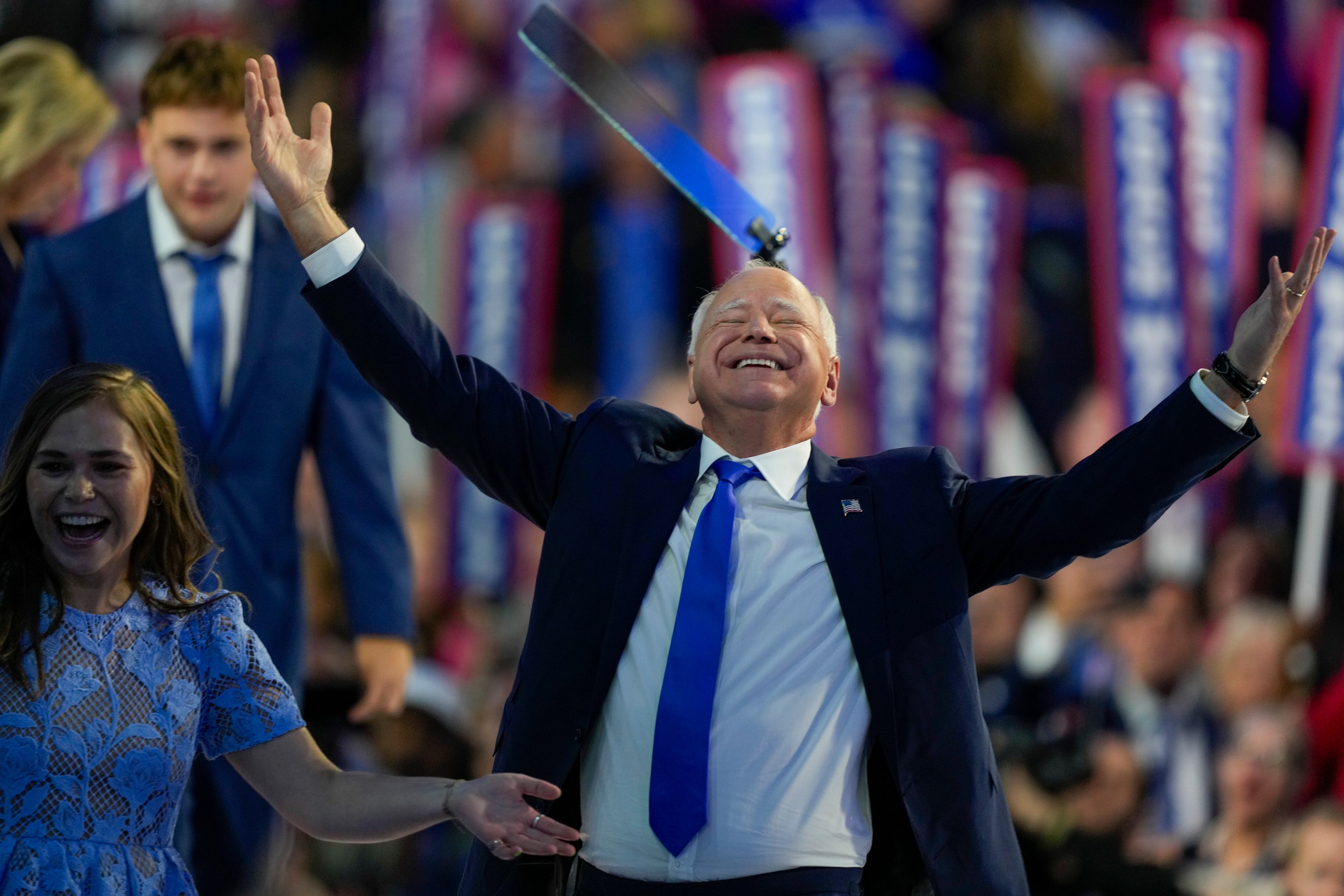 El gobernador de Minnesota, Tim Walz, aceptó el miércoles la nominación de su partido a la vicepresidencia de Estados Unidos y aprovechó su discurso en la Convención Nacional Demócrata para dar las gracias al abarrotado estadio por “traer la alegría” a unas elecciones tranformadas por la desgnación de su compañera de fórmula, la vicepresidenta Kamala Harris.