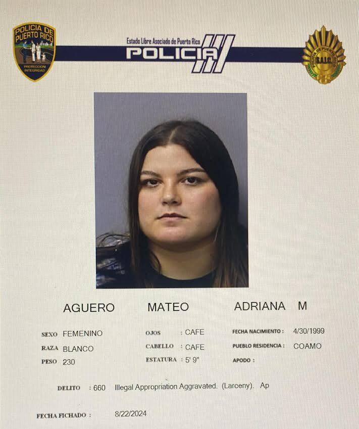 Las autoridades presentaron cargos criminales por los delitos de apropiación ilegal, fraude y maltrato a persona edad avanzada, contra una mujer, identificada como Adriana M. Agüero Mateo, de 25 años y residente de Coamo.