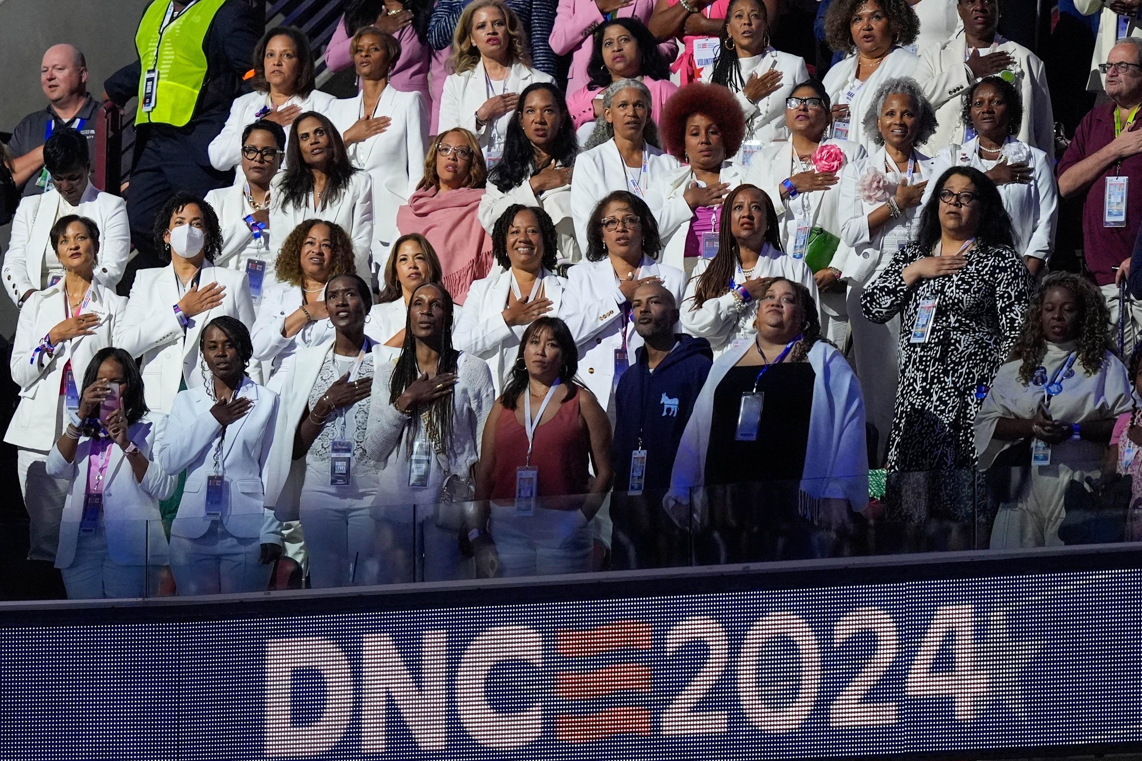 CHICAGO (AP) — Si cree que está viendo a muchas mujeres vestidas de blanco durante la última noche de la Convención Nacional Demócrata en Chicago, no necesita ajustar los colores de su televisor.