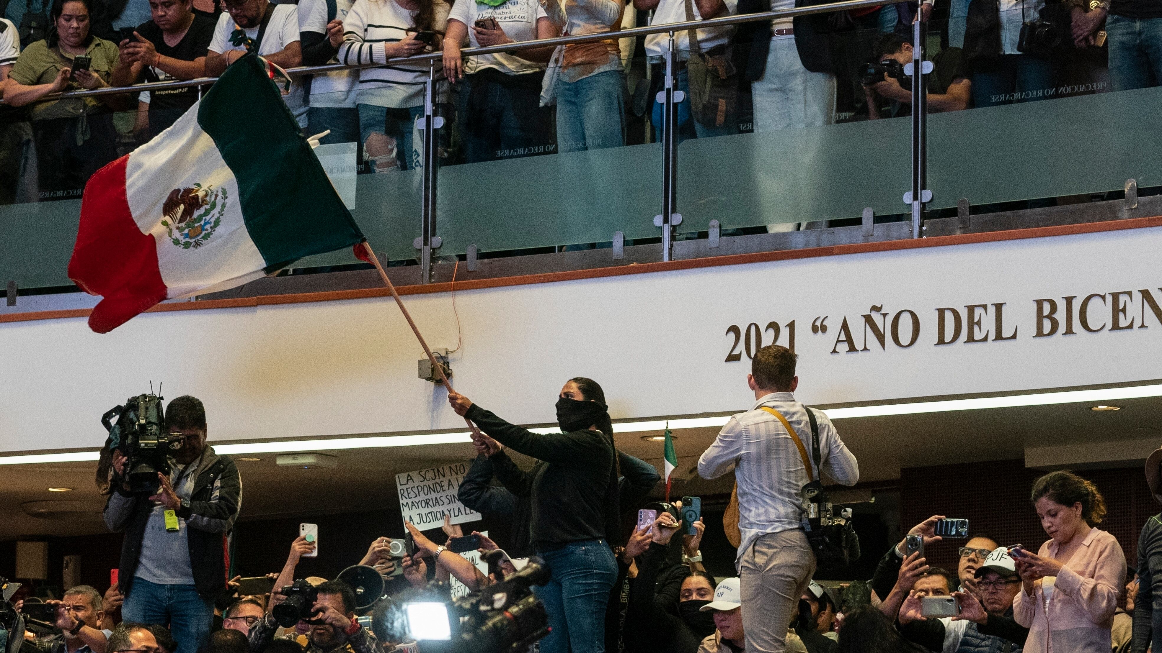 Los inconformes dijeron que los legisladores no estaban escuchando sus demandas. Ingresaron ondeando banderas de México y pancartas en contra de la reforma, y algunos senadores de la oposición se les sumaron mientras gritaban consignas dentro del Senado.
