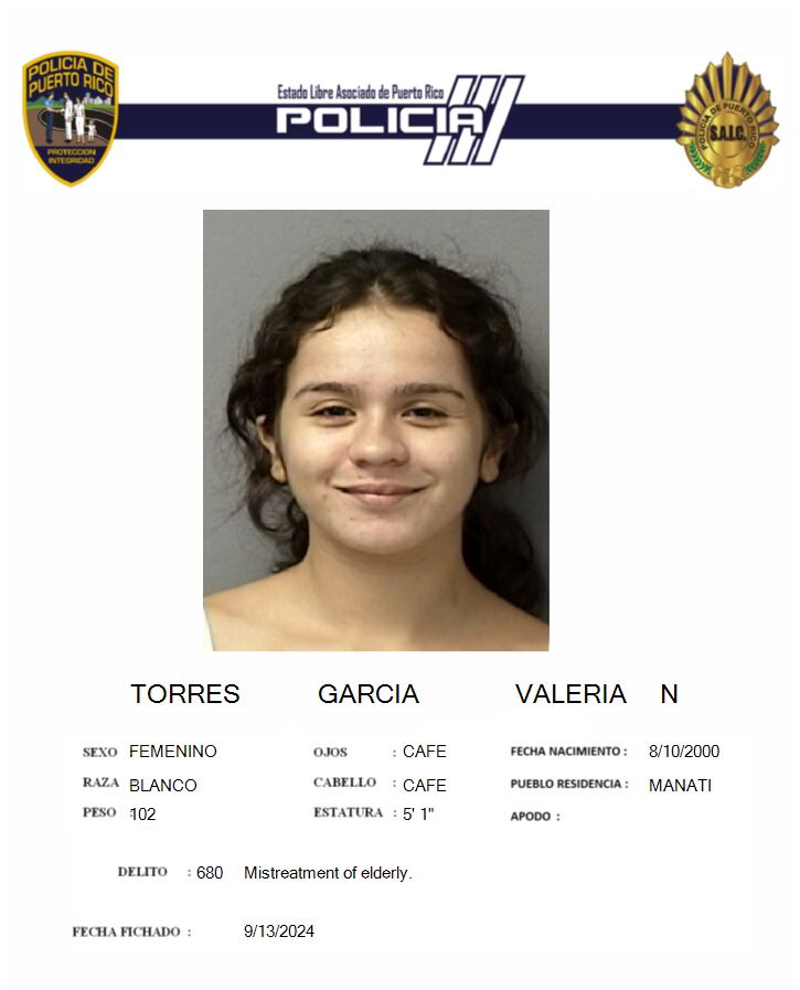 Se trata de Valeria N. Torres García, de 24 años, contra quien pesaba una orden de arresto con una fianza de 20 mil dólares por el delito de maltrato a persona de edad avanzada.