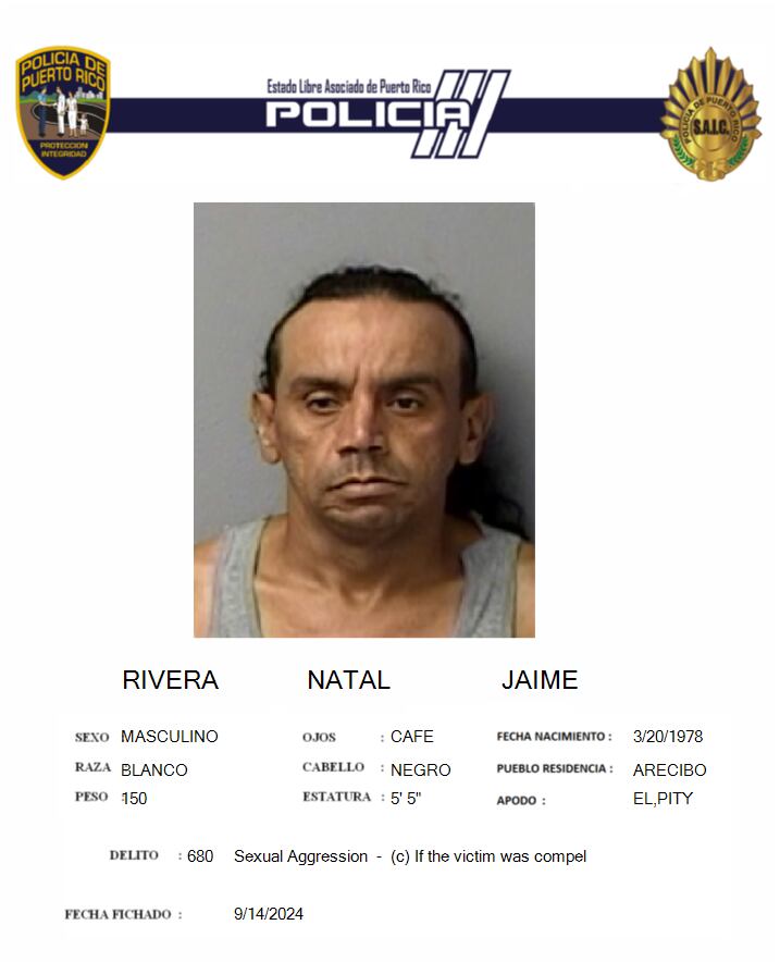El Negociado de la Policía de Puerto Rico (NPPR) y el Departamento de Justicia (DJPR) radicaron cargos criminales ayer, sábado, contra Jaime Rivera Natal de 46 años, imputado de agredir sexualmente a una septuagenaria en el municipio de Arecibo.