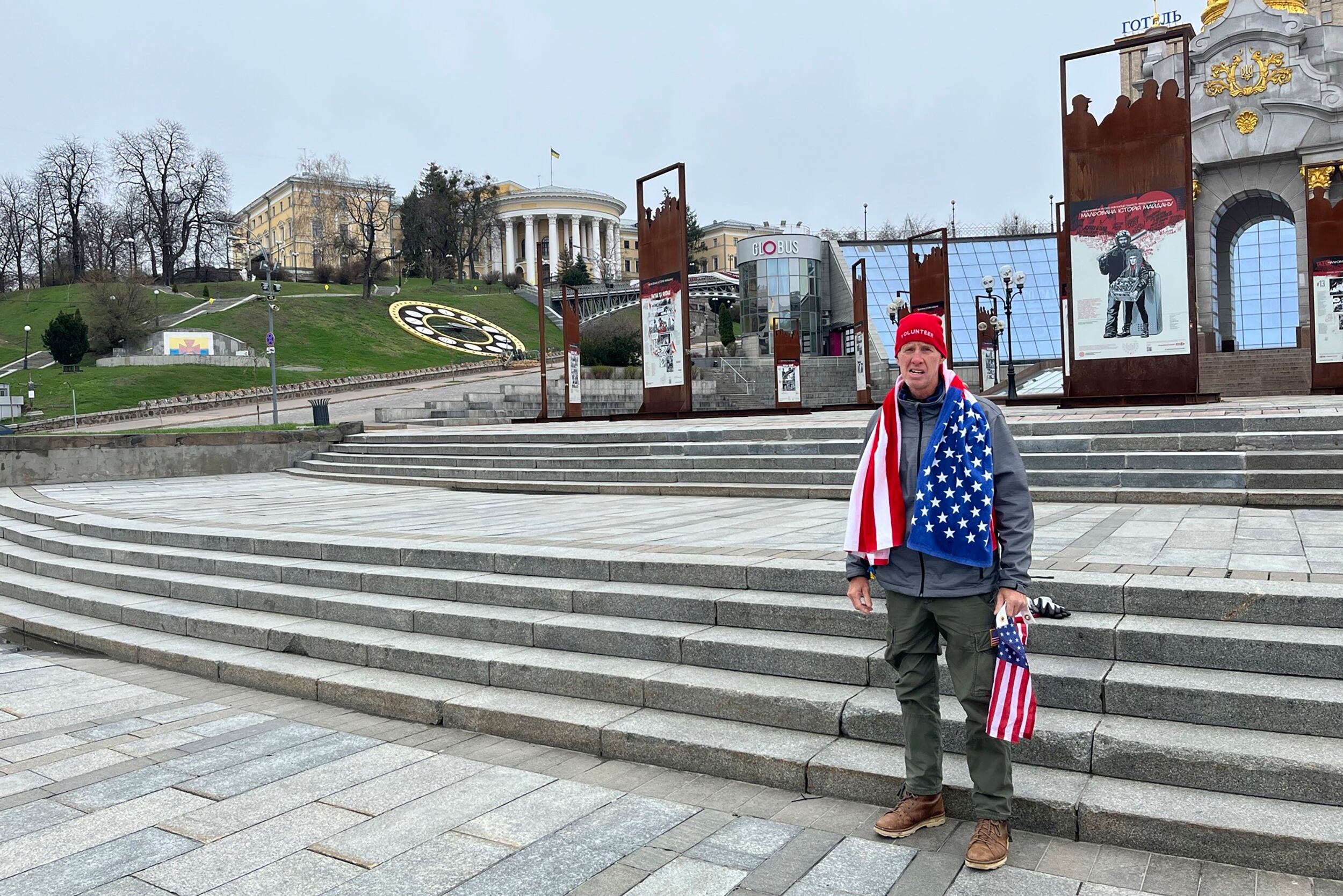 En un video de AP se ve a Routh en una pequeña manifestación en la Plaza Independencia de Kiev en abril de 2022, dos meses después de que el presidente Vladimir Putin ordenó invadir al país.
