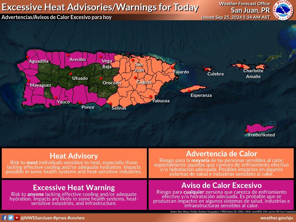 🥵Excessive Heat WARNING & Heat ADVISORY.#prwx #USVIwx pic.twitter.com/g1aGcAk9HQ
