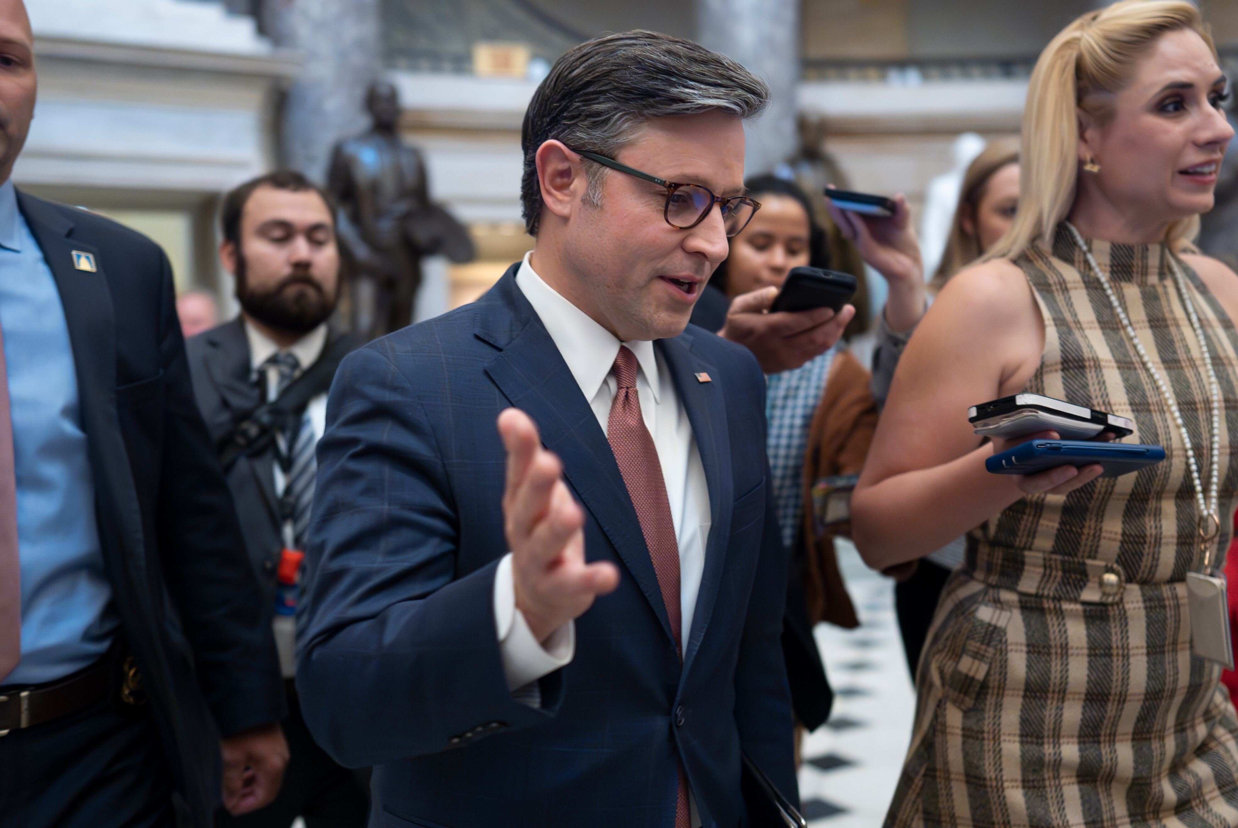 El presidente de la Cámara de Representantes, el republicano Mike Johnson, dijo que la medida hace “sólo lo que es absolutamente necesario”, una declaración dirigida a los miembros de su propia coalición preocupados por los niveles de gasto.