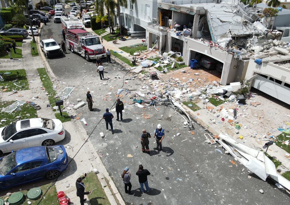 La explosión provocó daños a las residencias aledañas, según se aprecia en visuales desde el lugar. La calle Arcoíris, donde ubica la residencia, quedó cubierta de escombros.