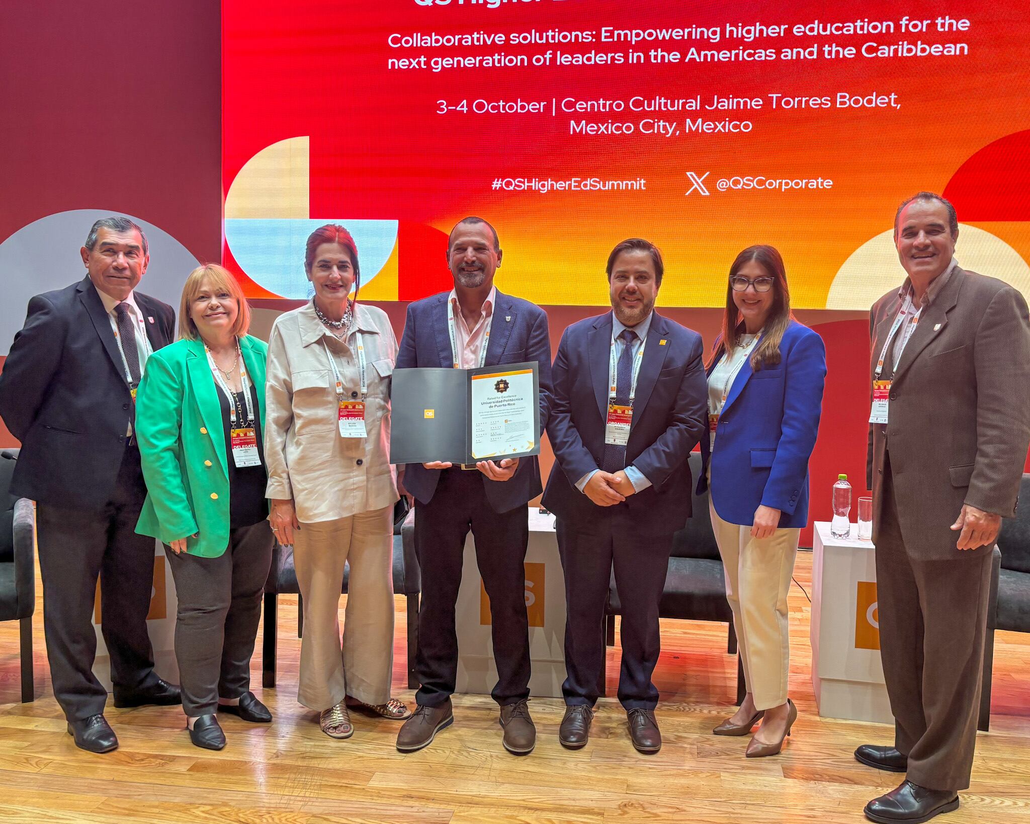 Directivos de la universidad viajaron a México para recibir el galardón en el marco del QS Higher ED Summit: Americas 2024, una cumbre que reúne a las principales universidades de América para discutir avances y compartir buenas prácticas en la educación superior. Entre los asistentes al evento estuvieron el presidente de la Universidad, Ernesto Vázquez Martínez; el vicepresidente de Asuntos Académicos, Carlos González; la vicepresidenta de Operaciones y Planificación Estratégica, Sylvia Rivera; el decano asociado de la Escuela de Ingeniería, Dr. Godoy; la directora de la Oficina de Registro y Programa de Intercambio, Mayra López; y la directora de Comunicaciones, Glenda M. Colón Ramos.