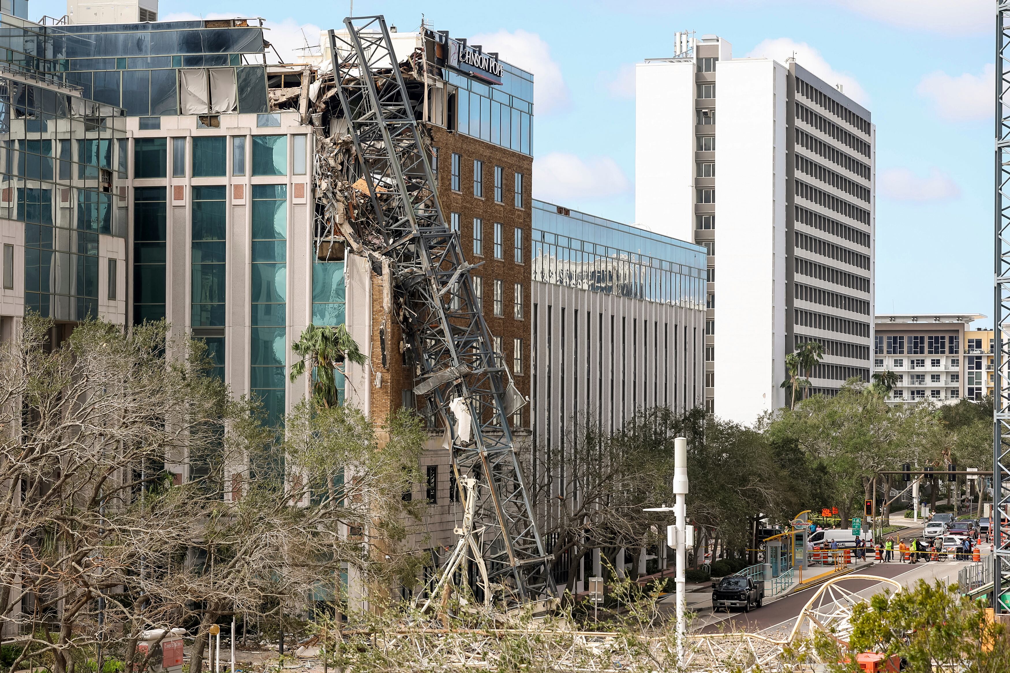 La grúa se vino abajo en un sitio de construcción de un edificio de condominios y oficinas de 46 pisos, que será la torre residencial más alta en la costa del Golfo de Florida. El aparato se estrelló contra un edificio cercano donde se encuentra el diario Tampa Bay Times.