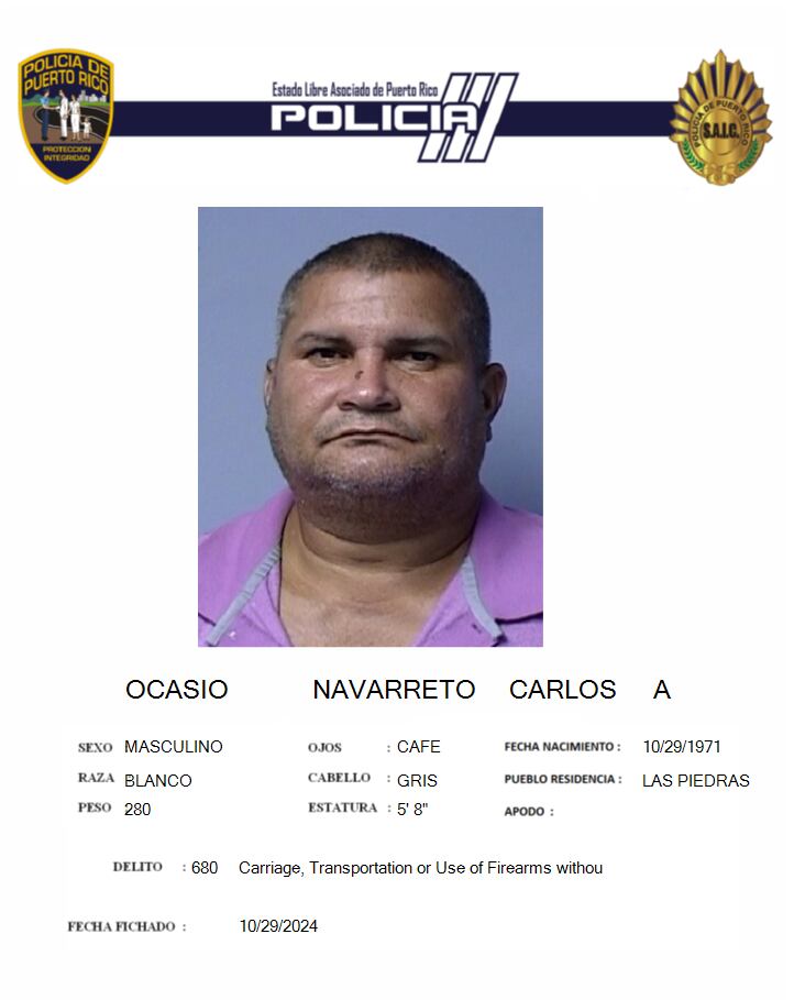 Agentes del Negociado de la Policía de Puerto Rico, adscritos distrito de Las Piedras, llevaron a cabo una investigación que culminó en la tarde de ayer, con la radicación de un cargo criminal por parte de la Fiscalía, por violentar al artículo 5 inciso a (maltrato de animales, causar daño físico y sufrimiento a un animal) de la Ley 154, Ley para el Bienestar y la Protección de Animales, contra un hombre, identificado como Carlos A. Ocasio Navarreto, de 53 años y residente de Las Piedras.