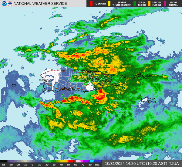 El Servicio Nacional de Meteorología (NWS, por sus siglas en inglés) en San Juan ha emitido este jueves varios avisos de inundaciones para diferentes áreas de Puerto Rico debido a las fuertes lluvias generadas por tormentas intensas que han afectado a gran parte de la isla. Las precipitaciones han provocado inundaciones urbanas y en pequeños arroyos, afectando zonas de drenaje deficiente y elevando el nivel de ríos y quebradas.