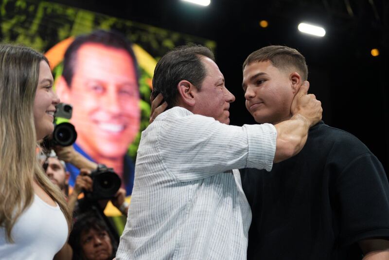 En compañía de sus hijos, Sofía y Gabriel, y visiblemente emocionado, el candidato a la gobernación por la Alianza PIP-MVC, fue recibido por el pueblo que gritaba “¡Ese es, ese es, ese es!”.