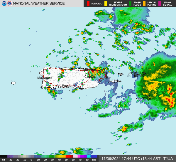 El Servicio Nacional de Meteorología (SNM) en San Juan ha emitido una advertencia de inundaciones para los municipios de Bayamón, Carolina, Cataño, Guaynabo, Loíza, San Juan, Toa Baja y Trujillo Alto, válida hasta las 8:15 de la noche de este miércoles.