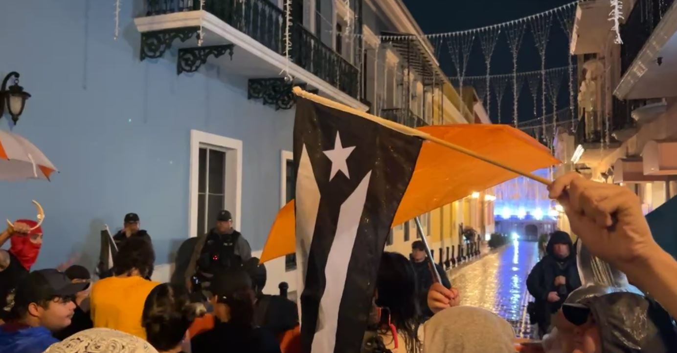 Decenas de personas llevan a cabo en horas de la noche de hoy, miércoles, una protesta frente a La Fortaleza en el Viejo San Juan.