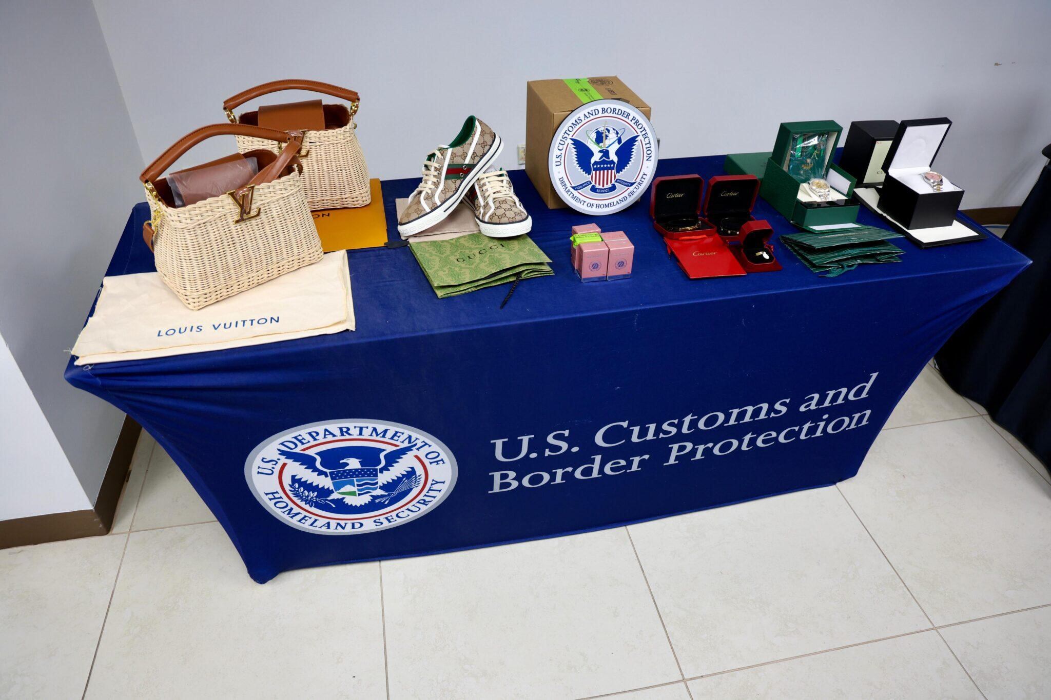 Durante una reciente conferencia de prensa, HSI mostró mercancía incautada en septiembre, donde oficiales de CBP en San Juan detuvieron un cargamento sospechoso de violar derechos de propiedad intelectual.