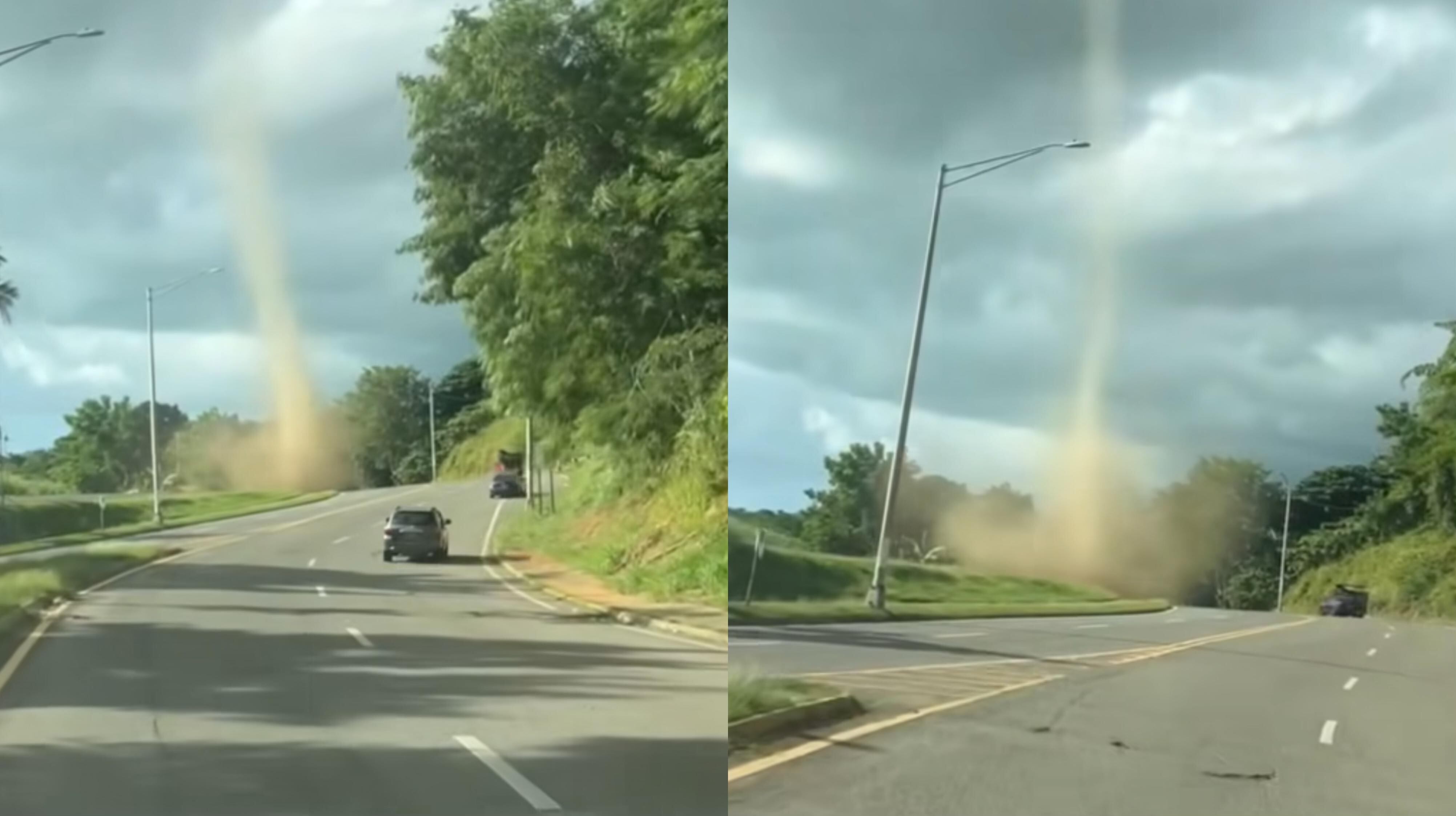 En el video, que dura 21 segundos, se puede a escuchar la voz de una persona diciendo: “¿En Mayagüez?”, mientras el remolino de polvo se va moviendo por la carretera.