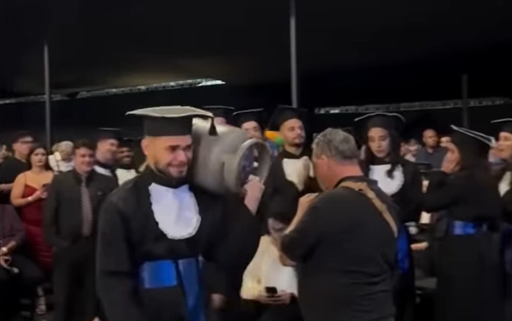 El oficio de su progenitor fue clave para que pudiera cumplir el sueño de obtener un título universitario. Por esa razón, con todo y toga, el brasileño levantó el tanque de gas como acto de agradecimiento.