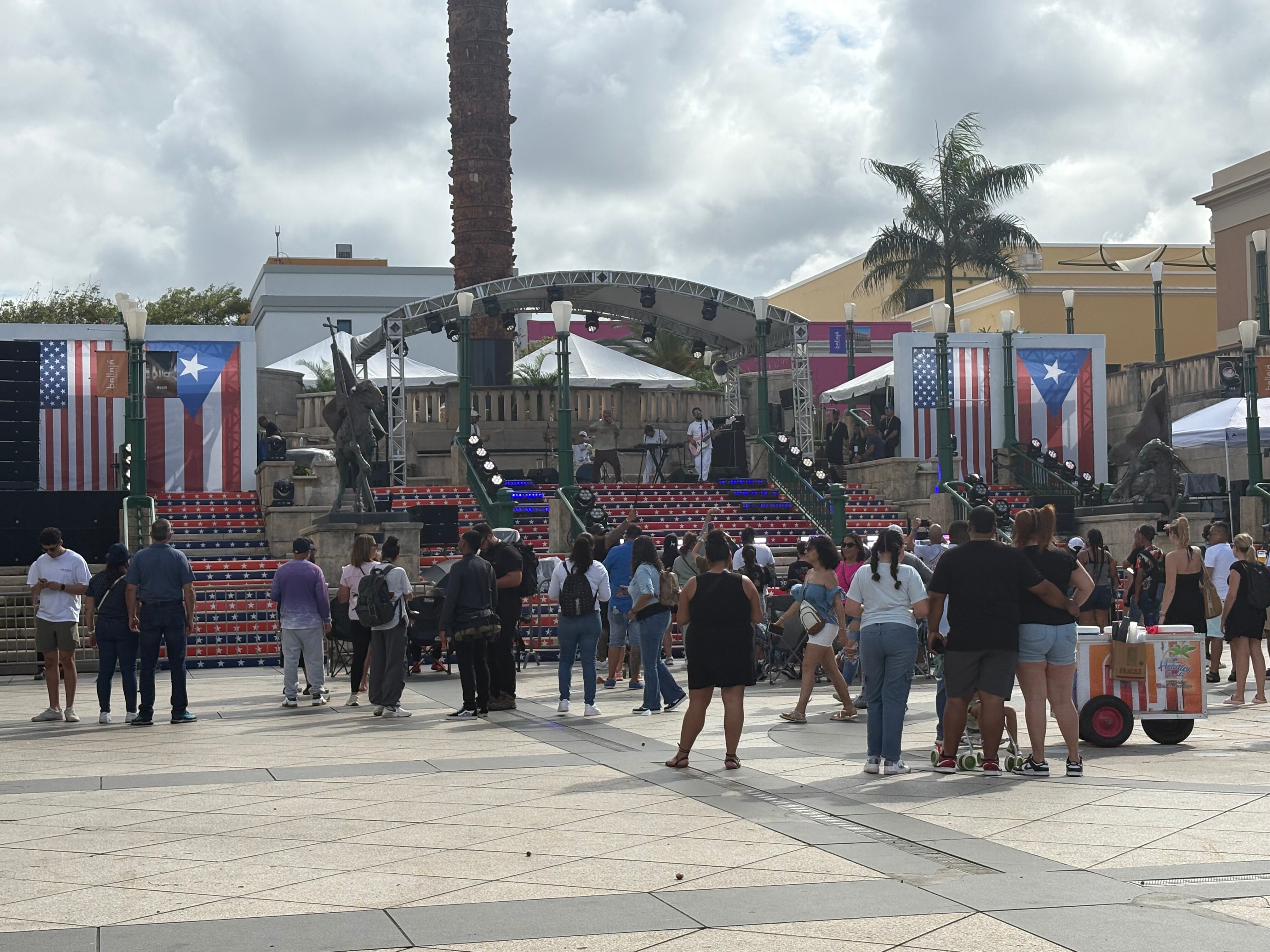 Las fiestas de pueblo organizadas este jueves para celebrar la toma de posesión de Jenniffer González Colón como gobernadora de Puerto Rico comenzaron puntualmente a las 2:00 p.m. en la Plaza del Quinto Centenario, mejor conocida como el Tótem, en el Viejo San Juan. Sin embargo, al inicio del evento, la plaza permanecía con pocos ciudadanos en los alrededores.