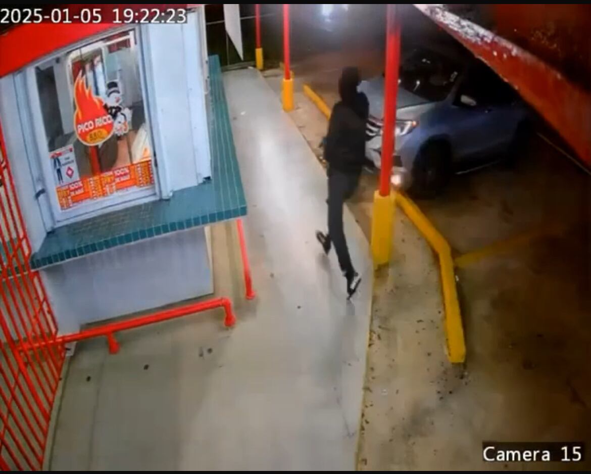 En un video circulado en redes sociales se puede observar a uno de los asaltantes correr hacia el negocio y demandarle al empleado a darle el dinero de la caja fuerte mientras le apuntaba con el arma de fuego.