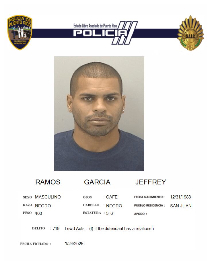 Agentes del Cuerpo de Investigaciones Criminales (CIC) de San Juan investigan a Jeffrey Ramos García, de 36 años, por supuestamente cometer actos lascivos y mantener un patrón de acecho contra una mujer de 61 años, quien es su familiar paterna.