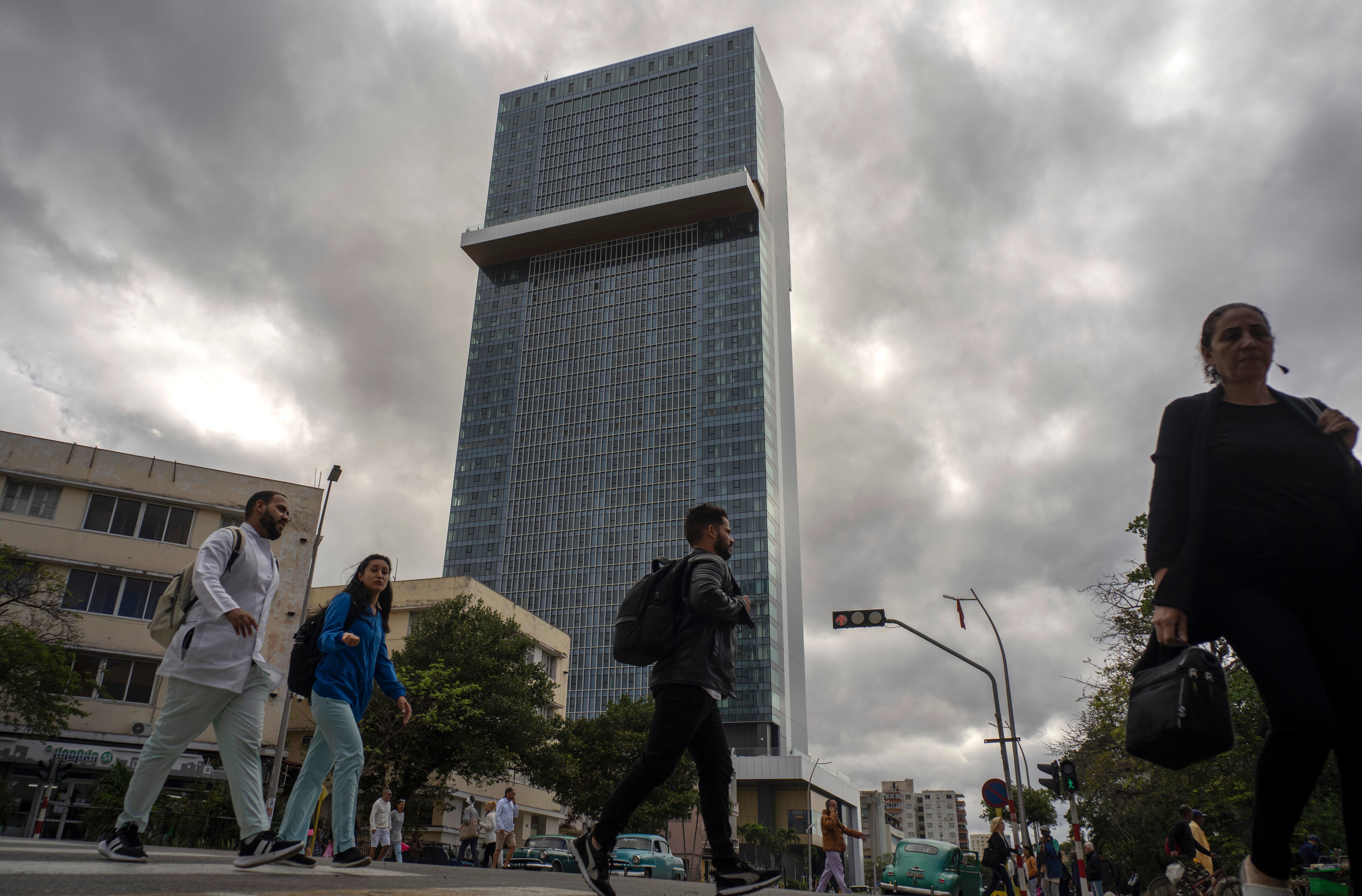 Ubicada sobre la calle 23 a metros del legendario Habana Libre y la icónica heladería Coppelia, la nueva torre fue incluida en el plan de inversiones de 2015, “tiempo en que el turismo cubano disfrutaba de un crecimiento muy significativo, producto de un notable mejoramiento en las relaciones con Estados Unidos”, comentó a la AP el economista José Luis Perelló.