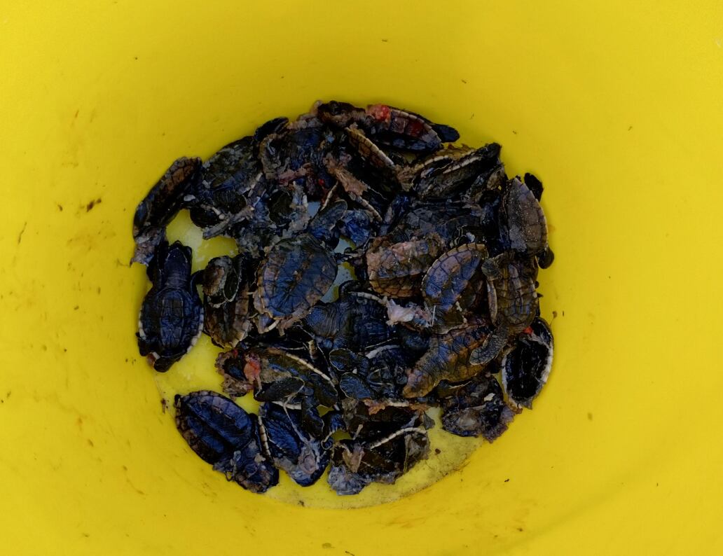 “Mañana dura y difícil. Tener que recoger 39 careyitos aplastados en la carretera. Estamos aquí desde las 6:00 a.m. Pudimos recoger 45 vivas y nos cuentan que algunas personas se llevaron algunas vivas...tal vez para liberarlas en la playa. Emergieron del nido un total de 151″, explicó el ente.