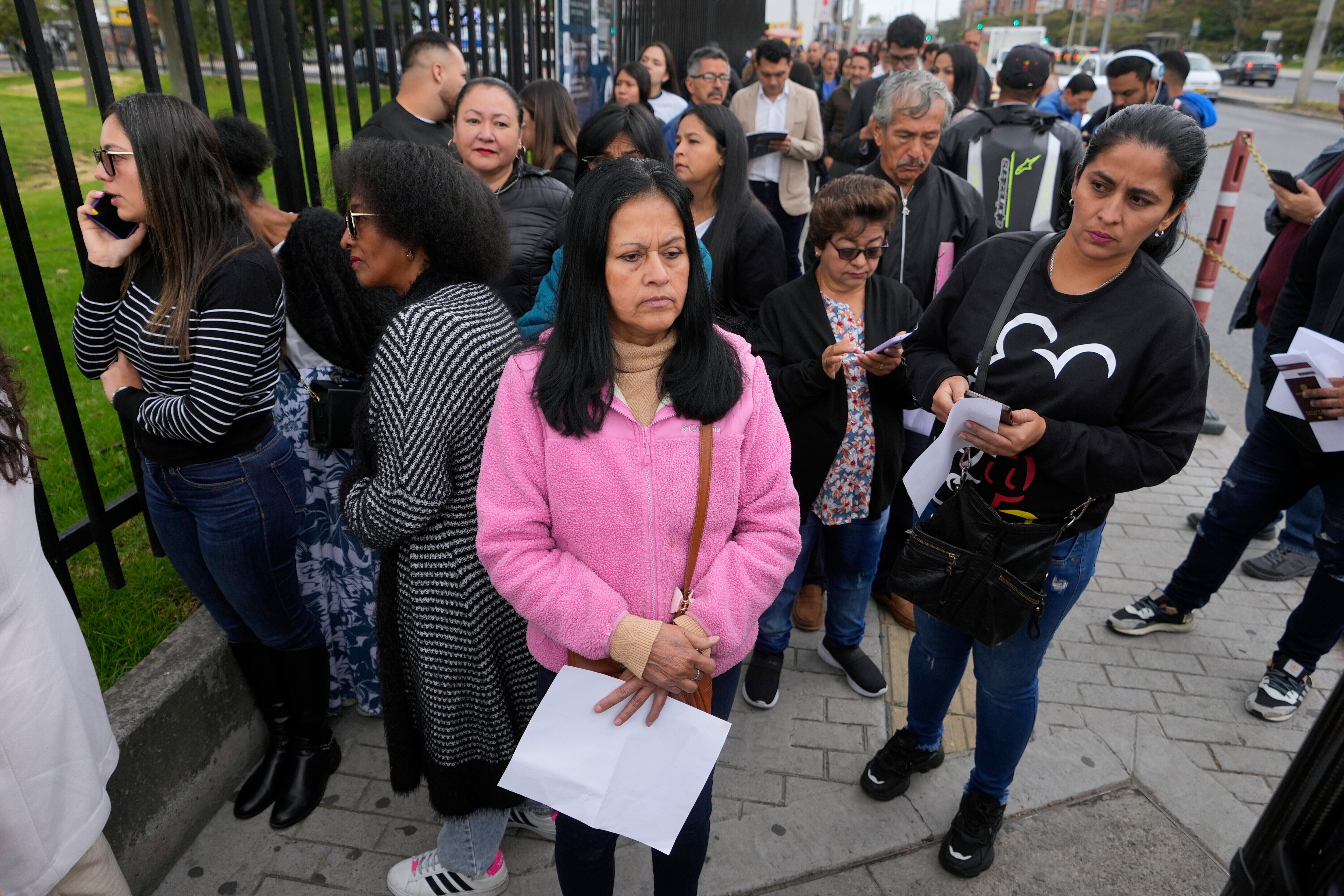 BOGOTÁ (AP) — Cerca de un centenar de personas esperaban el lunes afuera de la embajada de Estados Unidos en Bogotá para hacer visados previamente programados. Sin embargo, los trámites continuaban suspendidos para ellos, pese a que el gobierno colombiano declaró superado el entredicho con Estados Unidos generado por la negativa de Colombia de recibir vuelos de inmigrantes deportados.