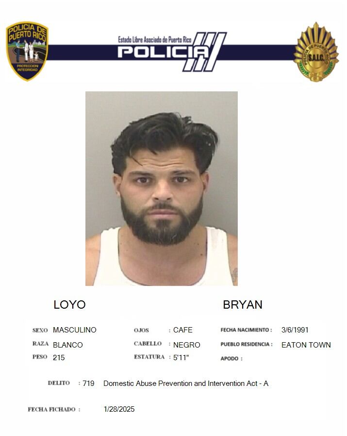 Agentes del Negociado de la Policía de Puerto Rico, adscritos al Precinto de Calle Loíza y Turística San Juan, realizaron una investigación que culminó con la presentación de cargos, por parte de la Fiscalía, por maltrato y maltrato agravado, bajo la Ley 54, contra un turista, identificado como Bryan Loyo, de 33 años y residente en el estado de Nueva Jersey.