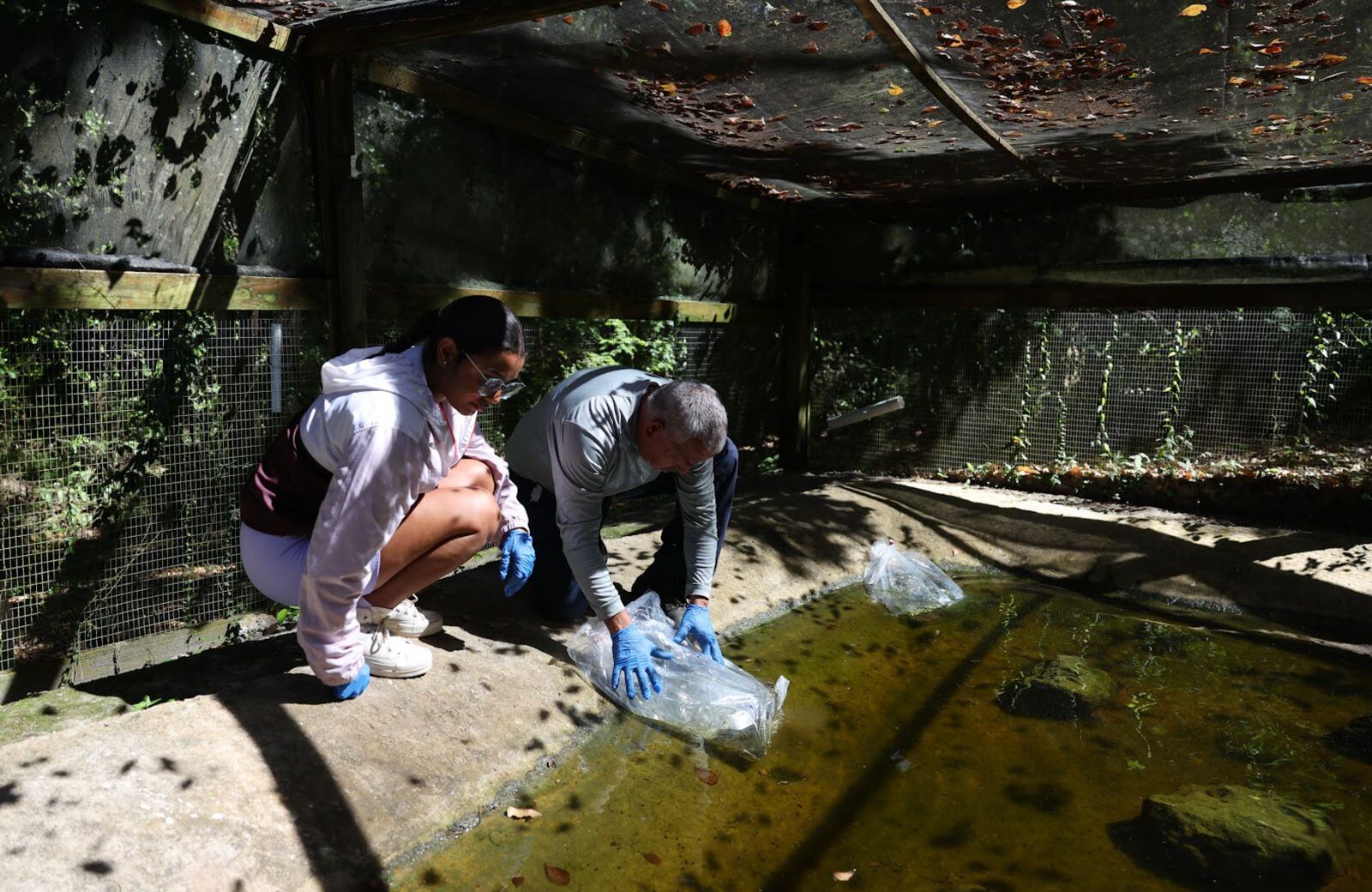 Una vez los renacuajos llegan a las charcas, el equipo de PLN revisa los estanques cada tres días para monitorear diferentes niveles en el agua. “Los procesos de metamorfosis de los renacuajos son bien delicados y regidos por las temperaturas y el pH, la salinidad y el oxígeno disuelto. Cosas tan pequeñas como niveles de oxígeno bajos en la charca hacen que los procesos de metamorfosis del sapo concho, que por lo general duran 28 días, sean acelerados o retrasados”, abundó Rodríguez.