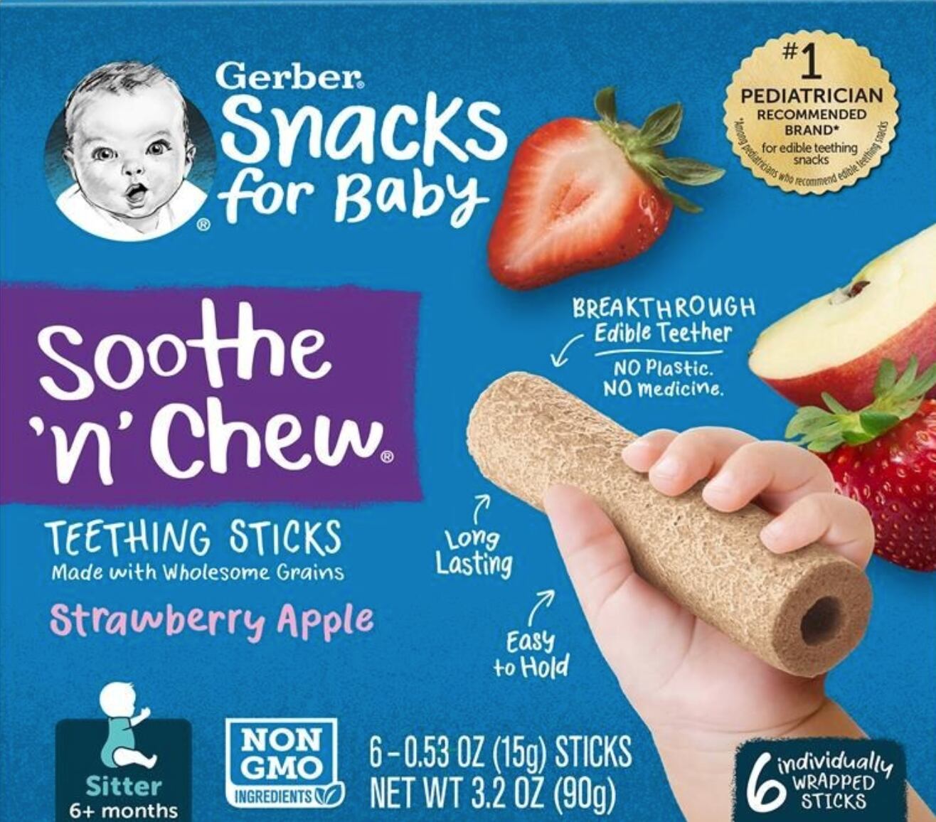 Los comestibles son: Gerber Soothe N’ Chew de fresa y manzana (UPC 0-15000 04618-7) y banana (UPC 0- 15000-04608-8 y UPC 0-15000-01015-7).