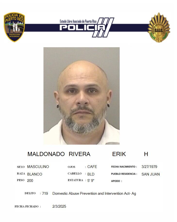Agentes del Negociado de la Policía de Puerto Rico, adscritos al Precinto de Río Piedras, realizaron una investigación que terminó en la presentación de cargos, por parte de la Fiscalía, por maltrato y maltrato agravado en Ley 54 para la Prevención e intervención de la Violencia Doméstica, contra un hombre, identificado como Erik H. Maldonado Rivera, de 45 años y vecino de San Juan.