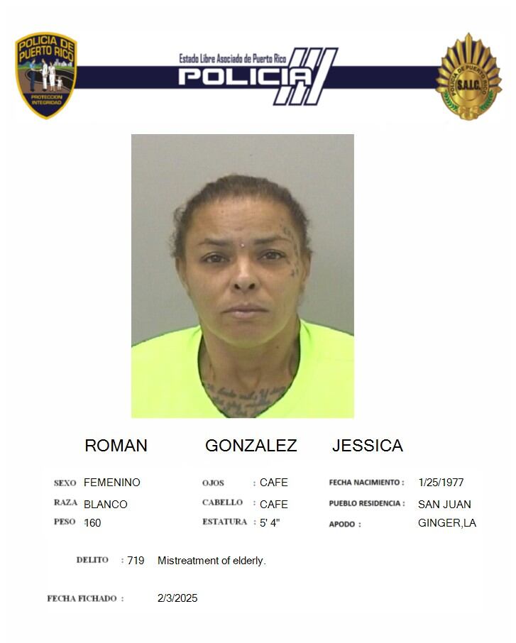 Policías municipales de San Juan realizaron una investigación que culminó en la presentación de cargos, por parte de la Fiscalía, por maltrato a personas de edad avanzada, contra una mujer, identificada como Jessica Román González, de 48 años y vecina de San Juan.