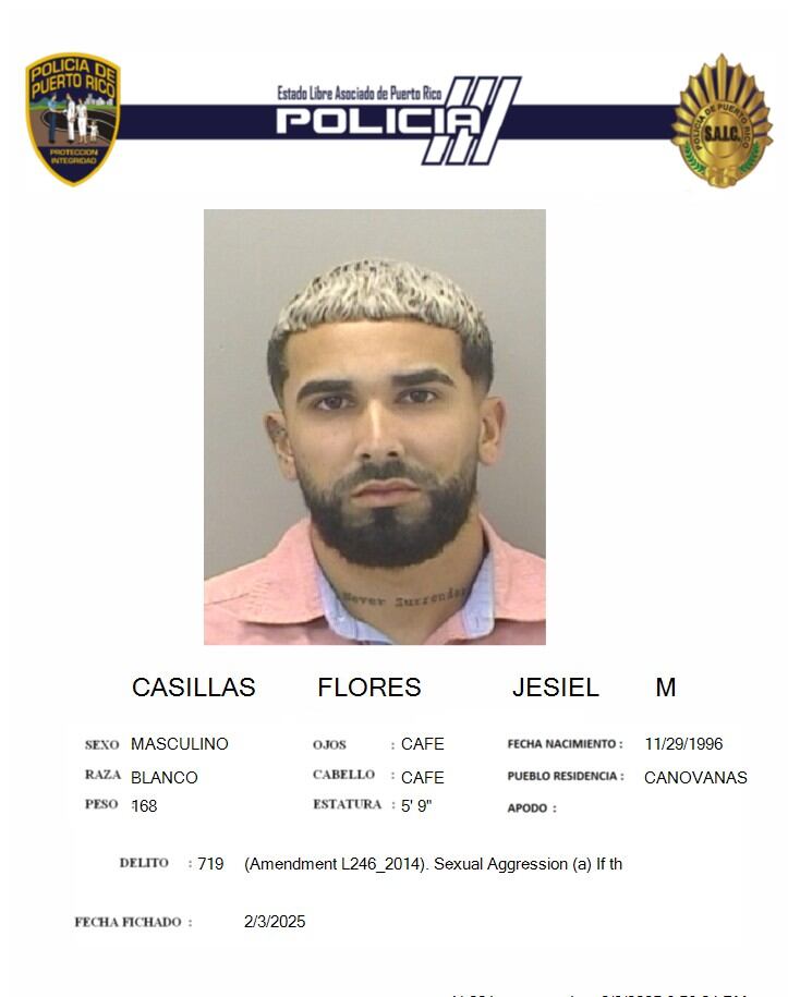 Agentes del Negociado de la Policía de Puerto Rico, adscritos a la División de Delitos Sexuales y Maltrato de Menores, realizaron una investigación que culminó en la radicación de cargos, por parte de la Fiscalía, por agresión sexual y maltrato de menores contra un hombre, identificado como Jesiel Manuel Casillas Flores, de 28 años y enfermero de profesión.