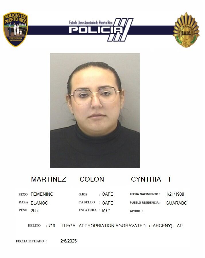 Martínez Colón enfrenta cinco cargos, incluyendo apropiación ilegal agravada, fraude, apropiación ilegal de identidad, maltrato a persona de edad avanzada y explotación financiera, según detalló la fiscal Elimaris Rivera Martínez, de la División de Delitos Económicos.
