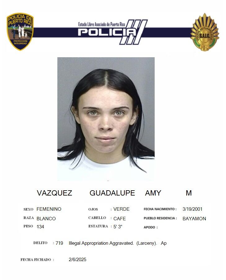 Las autoridades presentaron cargos criminales contra una mujer, identificada como Amy Vázquez Guadalupe, de 23 años y residente en Bayamón, por hechos ocurridos durante el mes de noviembre del año 2024, en la megatienda Walmart, ubicada en Bayamón.