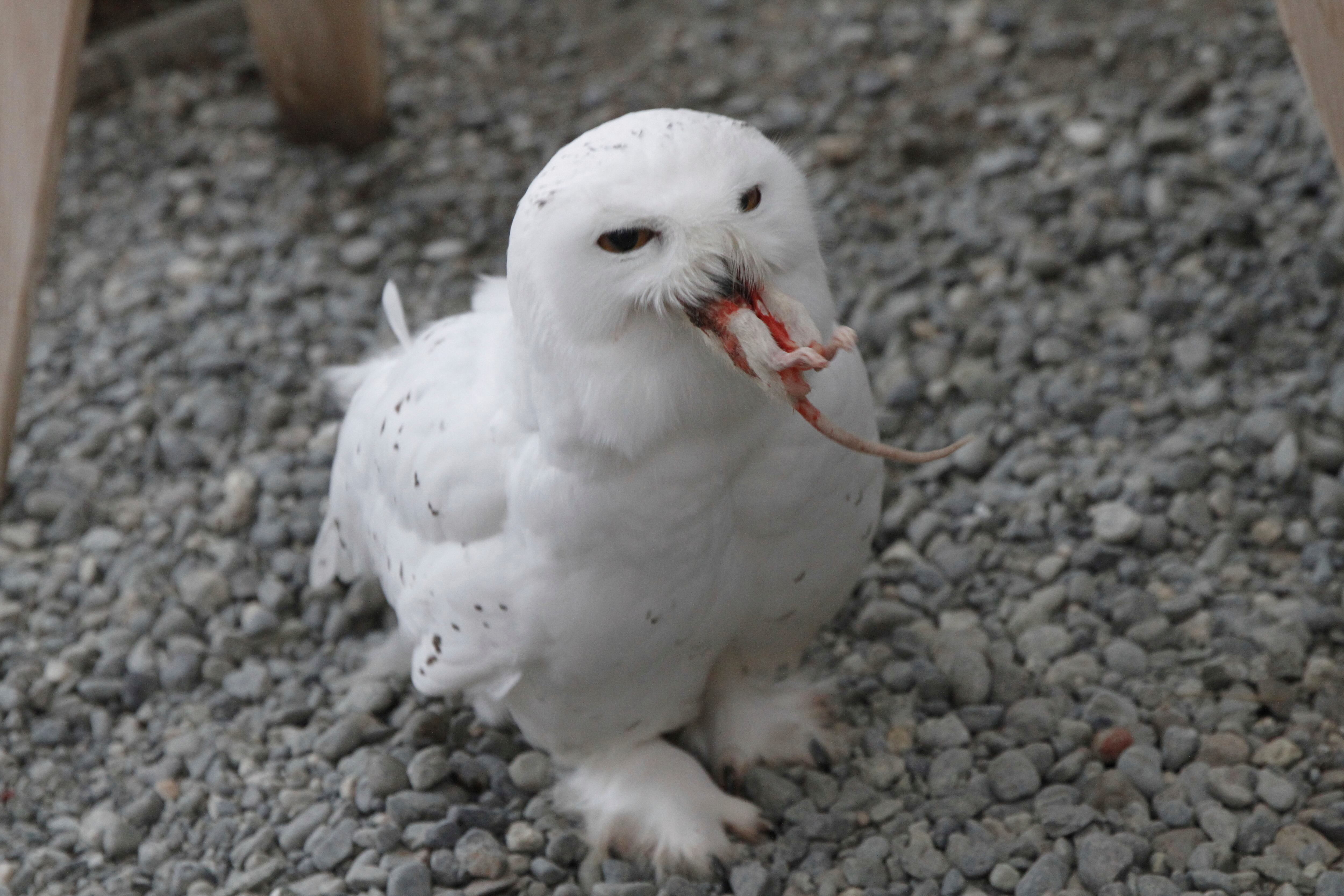 Los videos de aves rapaces como Ghost, una lechuza nival que puede tragar una rata entera, o un halcón peregrino llamado Breland, que mantiene una garra sobre el roedor y lo picotea hasta que desaparece, serán enviados por correo electrónico a los donantes.