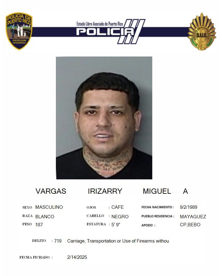Agentes del Negociado de la Policía de Puerto Rico, adscritos a la División de Homicidios del CIC de Mayagüez, realizaron una investigación que culminó en la radicación de cargos contra Miguel A. Vargas Irizarry, de 36 años y residente de Mayagüez.