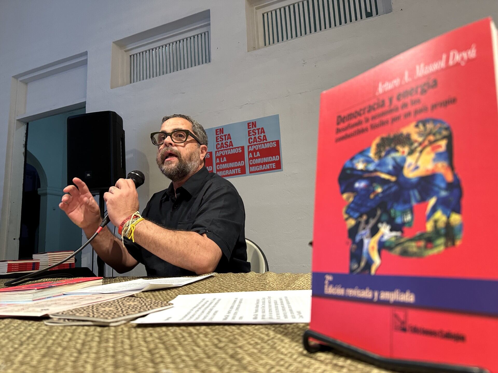 “Con la energía va a haber que llegar a un punto muy definido donde todos estamos de acuerdo y vamos a tener que irnos a las calles o hacer algo. Porque nosotros (en Casa Pueblo) seguiremos construyendo nuestro ejemplo, documentamos que funciona, pero la amenaza es muy grande y las implicaciones de lo que se va construyendo son muy avasalladoras. Es serio y muy dañino lo que se avecina para el país. El modelo energético que se va a reconstruir es para hacer imposible vivir en este país y que te tengas que ir”, expresó Massol Deyá durante la presentación de su libro Democracia y energía: desafiando la economía de los combustibles fósiles por un país propio en el Taller Comunidad La Goyco en Santurce.