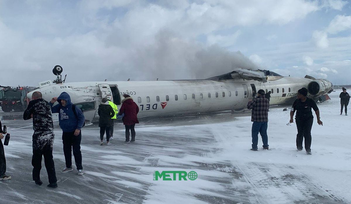 Un vuelo de Delta Airlines que llegó desde Minneapolis se volcó al aterrizar este lunes en el aeropuerto Pearson de Toronto, Canadá.