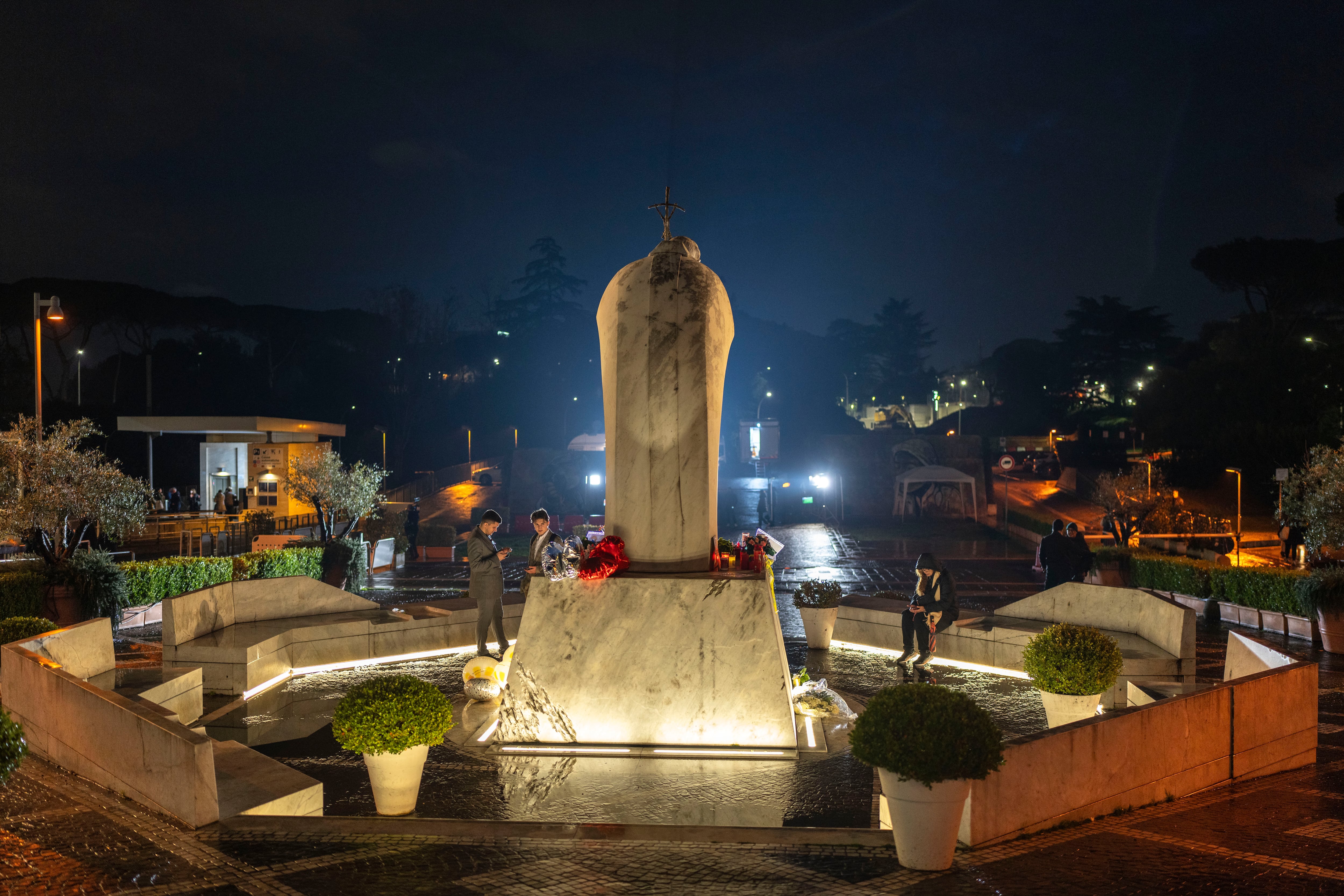 Al otro lado de la ciudad, romanos y otros se congregaron en la Plaza de San Pedro del Vaticano para el rezo nocturno del rosario, dirigido por el cardenal filipino Luis Antonio Tagle.