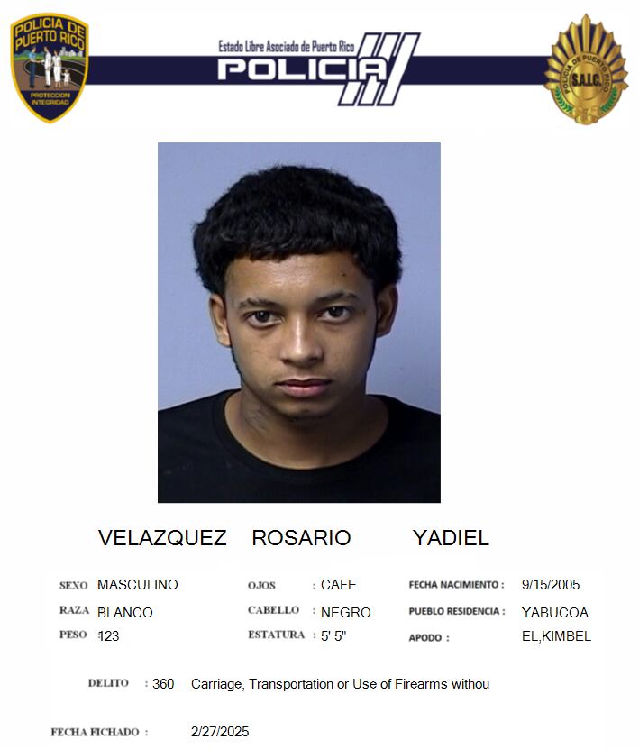De acuerdo a la Uniformada, en el lugar arrestaron Yadiel Velázquez Rosario, alias “El Kimbel”, de 19 años y residente de Yabucoa.