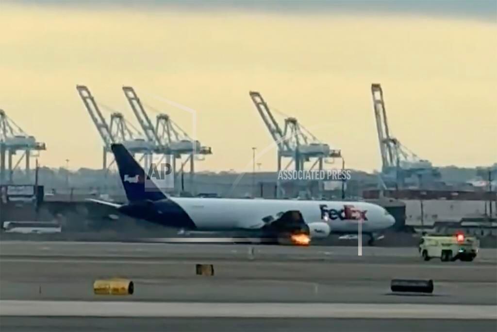 Un avión de carga de FedEx realizó un aterrizaje de emergencia en un concurrido aeropuerto de Nueva Jersey este sábado después de que un impacto con un ave causara un incendio en el motor.
